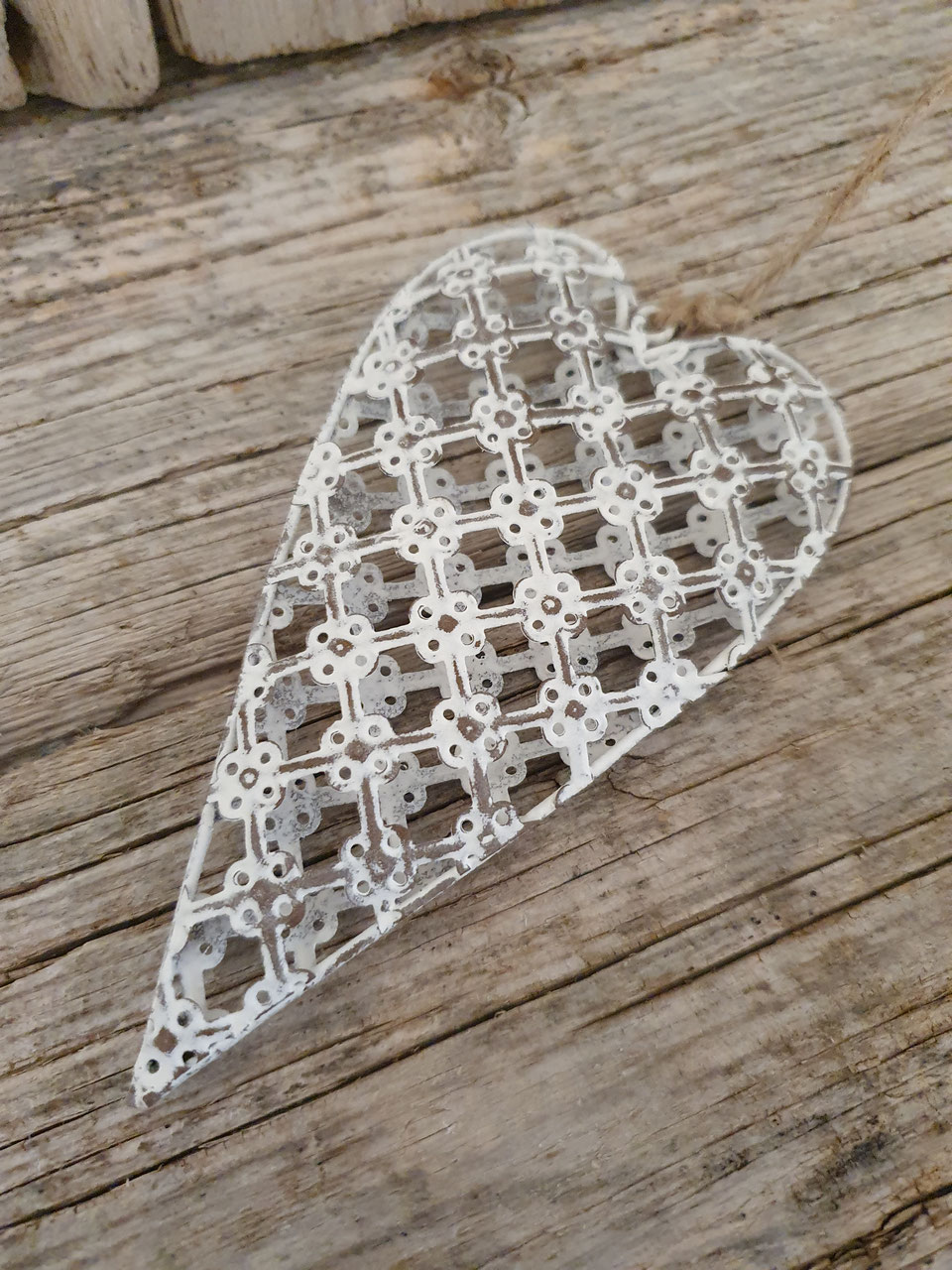 Wunderschöner Herz Anhänger Shabby Chic Stil aus Metall weiss.